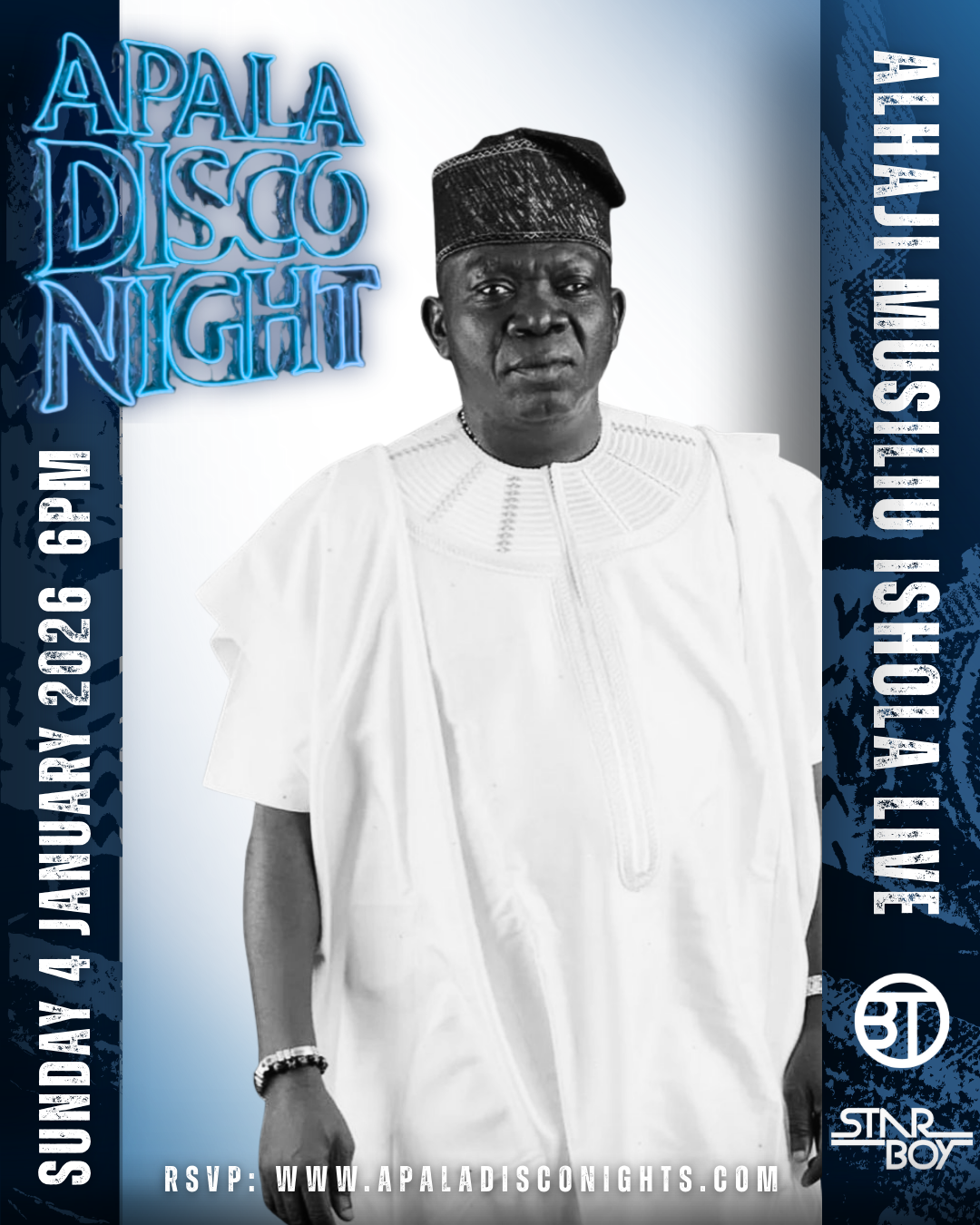 Apala Disco is where tradition meets the dancefloor. A fusion of old-school apala vibes with today’s Afrobeat energy culture, rhythm, and good times all in one room .