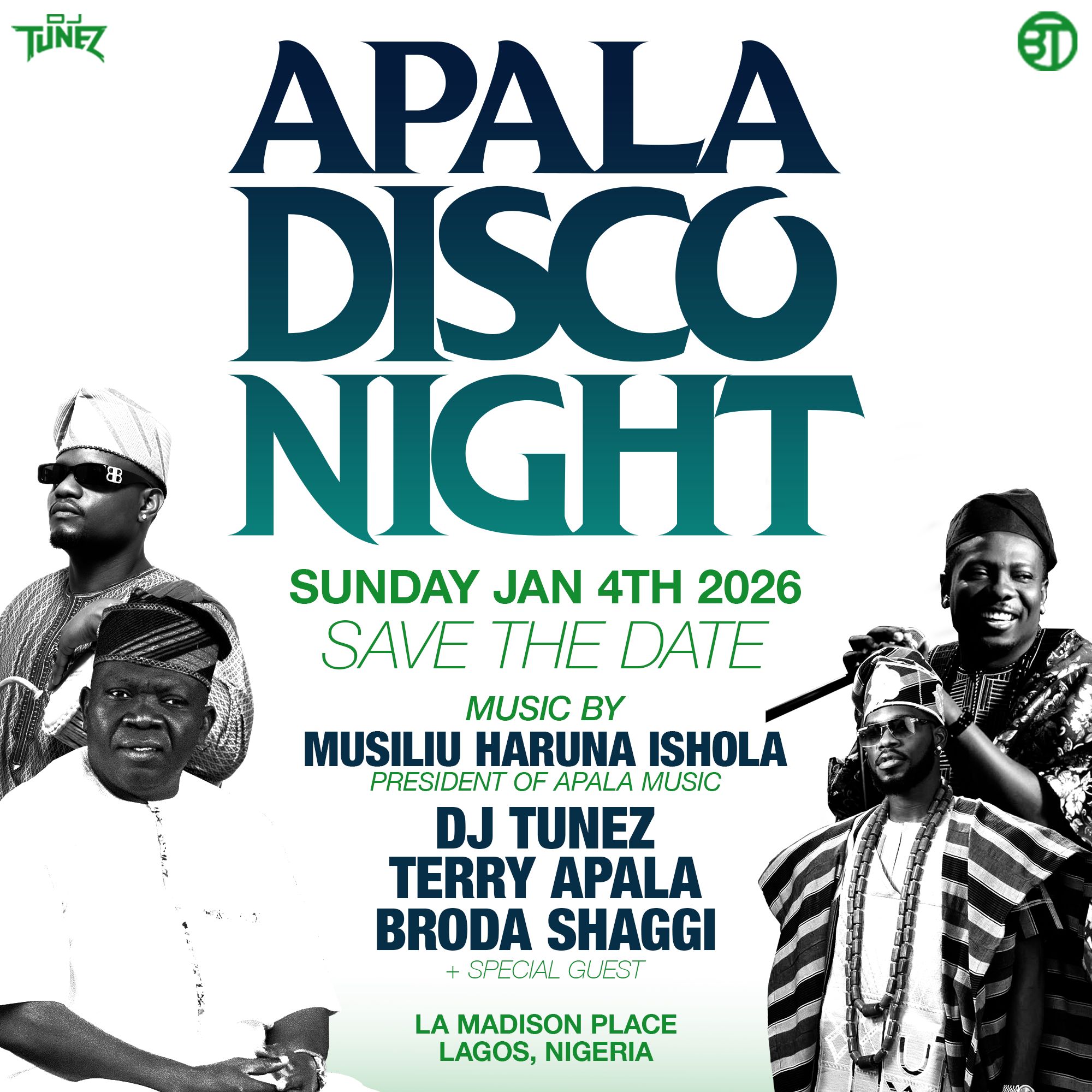 Apala Disco Night Apala Disco is where tradition meets the dancefloor. A fusion of old-school apala vibes with today’s Afrobeat energy culture, rhythm, and good times all in one room . APALA DISCO NIGHT SUNDAY, JANUARY 4th 2026Lagos Nigeria (No Table, No Entry) BOOK YOUR TABLES Jan 5th 20254pm : La Madison Place Lagos Nigeria (No Table, No Entry) GET TICKETS Get Tickets GALLERY VIDEOS